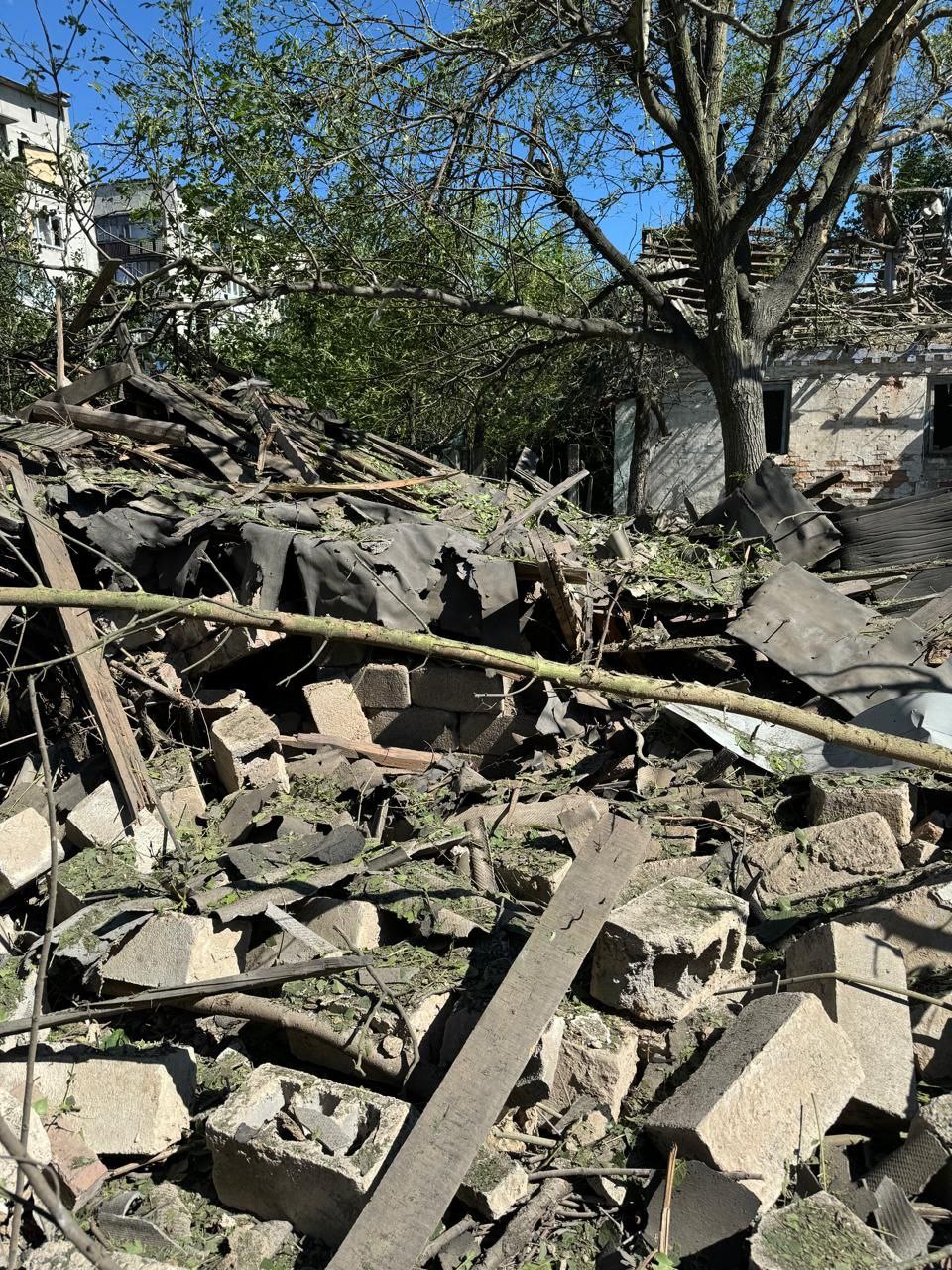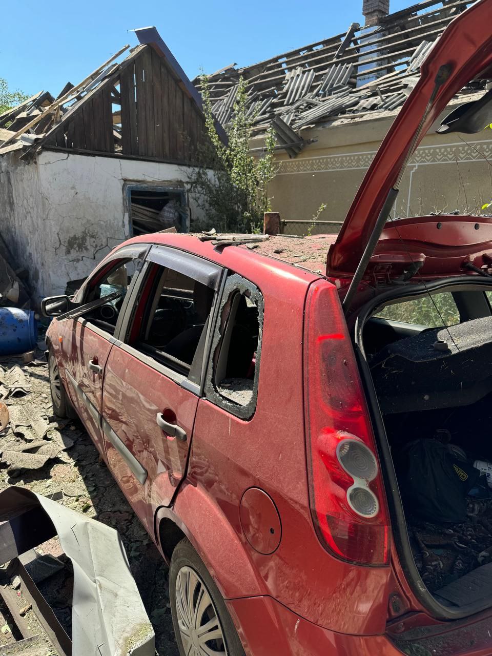 За його словами, "... пошкоджено 5 п'ятиповерхівок, 6 приватних будинків і автомобіль".