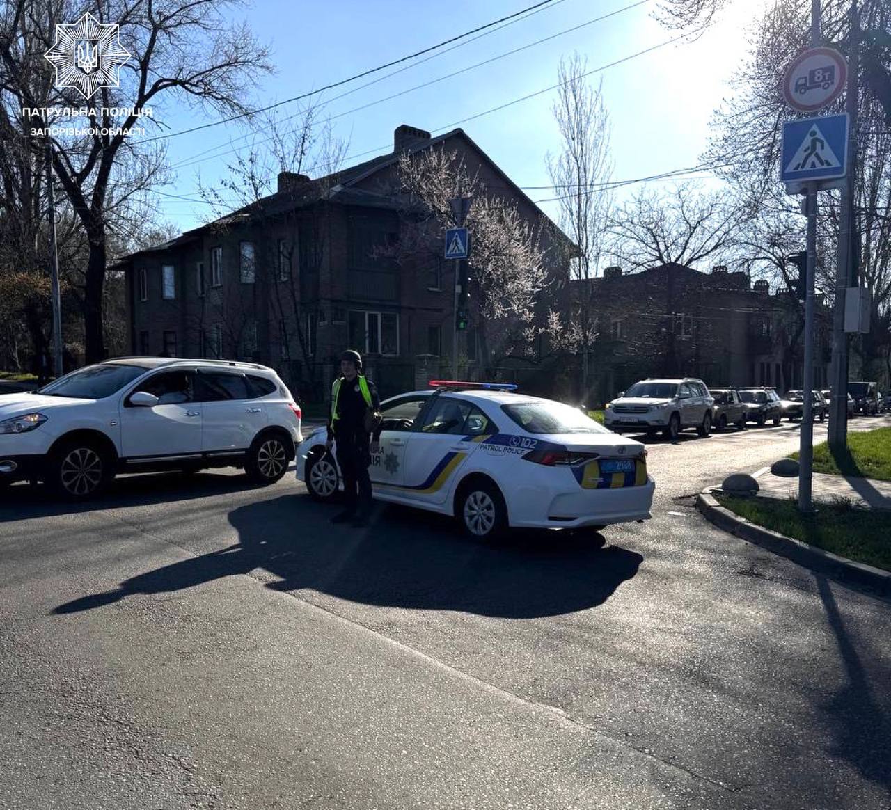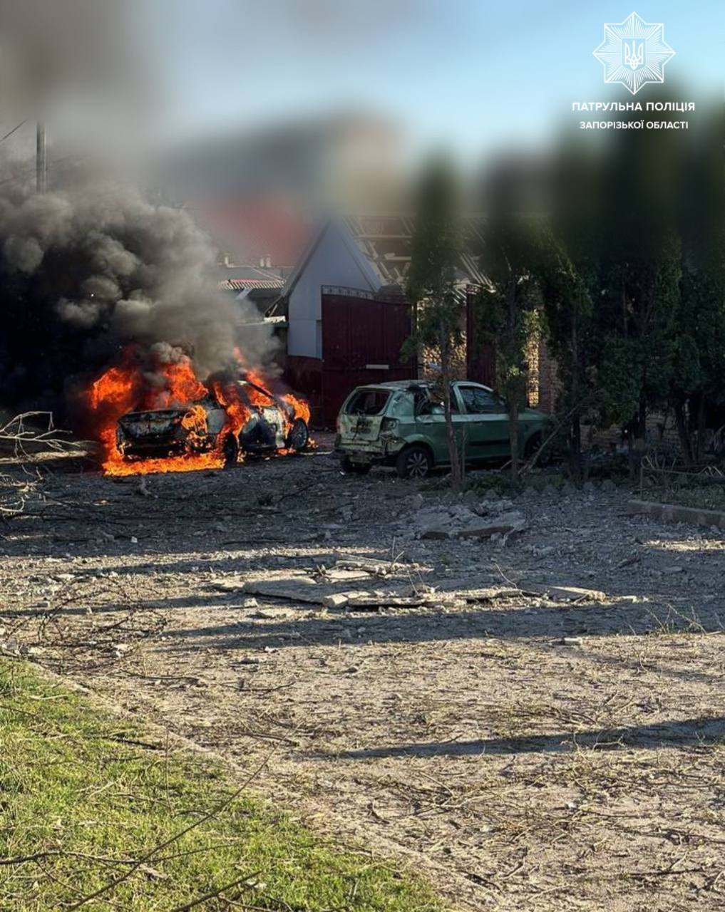 Також у мережі з'явилися фото наслідків удару. Про це повідомила прес-служба патрульної поліції Запорізької області.