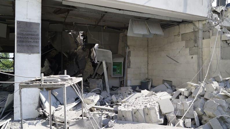 "Постраждали основні інфраструктурні об"єкти нашого університету. Перш за все, це сам навчальний комплекс імені Івана Прокопенка. Тут постраждали наукова бібліотека, музей університету, редакція газети "Вчитель", ректорський відділ і український мовно-літературний факультет імені Григорія Квітки-Основ"яненка. І, звичайно, вибуховою хвилею зачеплені інші корпуси нашого університету, вибиті вікна, руйнація достатньо серйозна", – розповів ректор Харківського національного педагогічного університету ім. Сковороди Юрій Бойчук.
