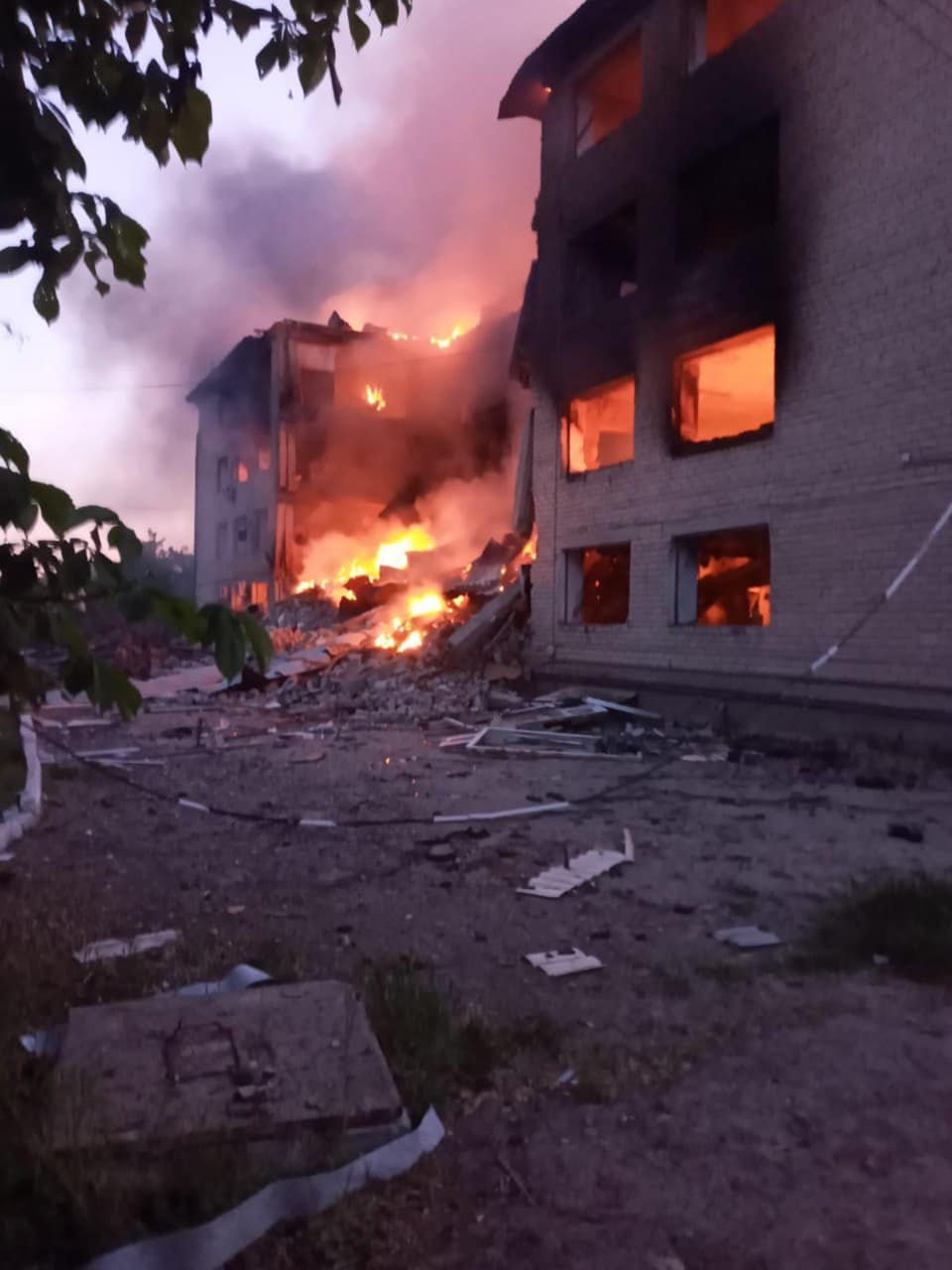 Росіяни скинули увечері вибухівку з дронів на навчальний заклад. На місці "прильоту" виникла пожежа.