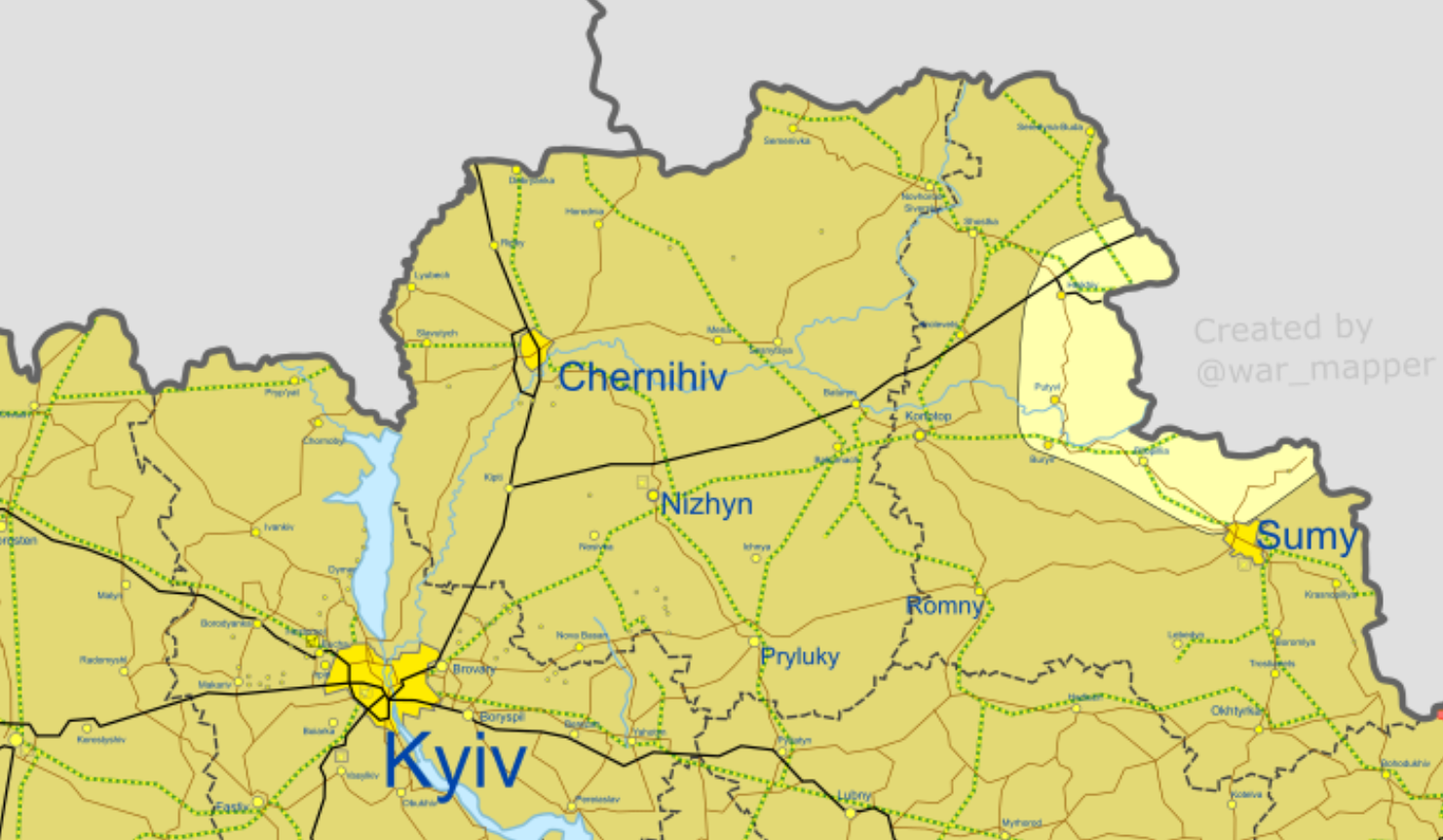 Згідно з останніми оновленнями карти, російські сили повністю завершили відхід з північної частини території країни, а прикордонні пости тепер захищені Україною.