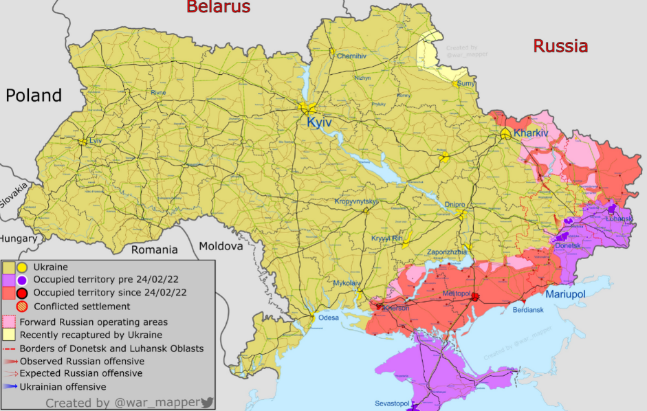 Про це свідчить актуальна інформація щодо наступу російських військ та бойових дій Ukraine War Map.