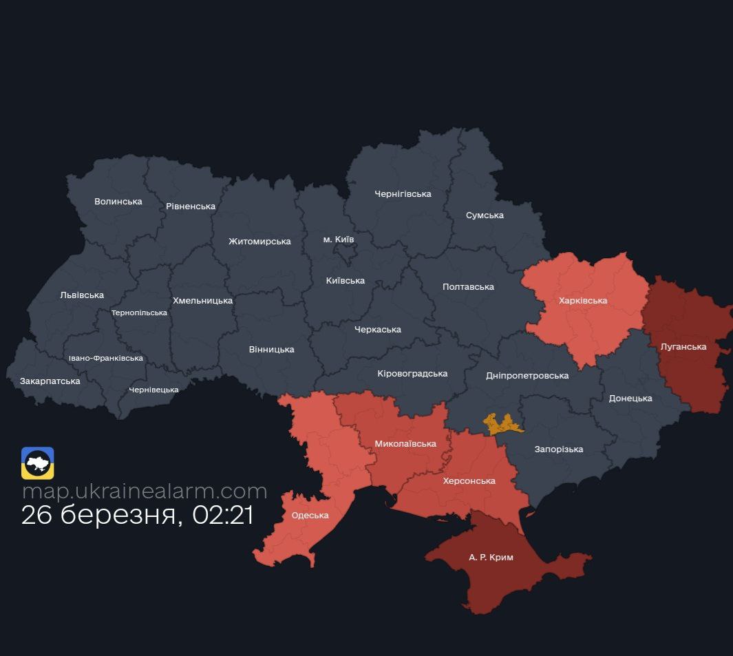 У вівторок, 26 березня вночі, РФ влаштувала атаку БПЛА на Харківську область. Попередньо обійшлося без жертв та постраждалих.