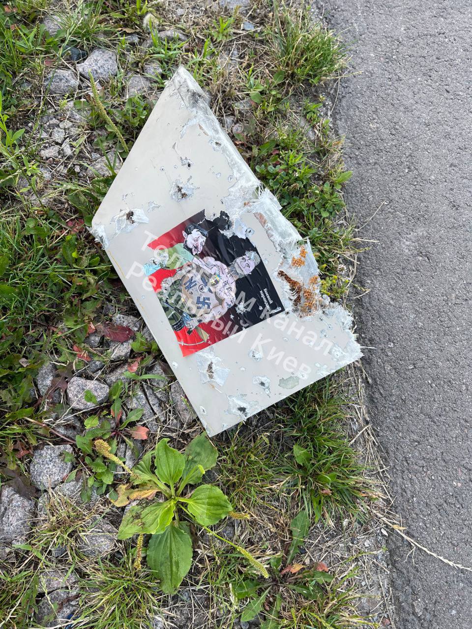 На одному з уламків "шахеда" було знайдено малюнок-послання від божевільних сусідів – на ньому зображений Зеленський та напівоголений, ймовірно, Залужний із нацистським татуюванням та українською символікою.