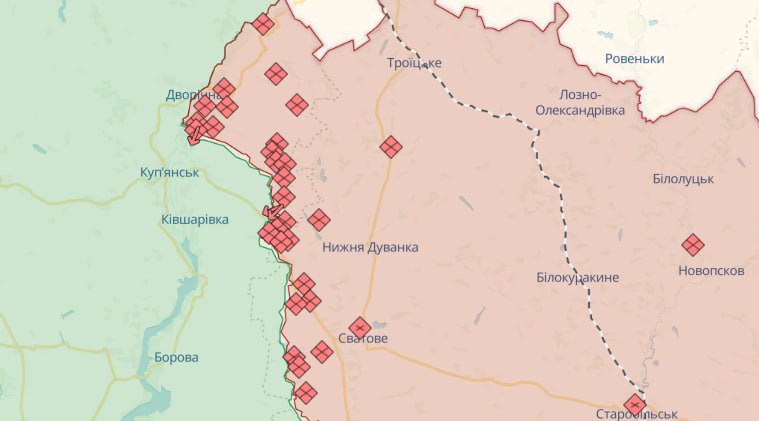 На Куп"янському напрямку Сили оборони відбили 13 ворожих атак в районах населених пунктів Кислівка, Берестове, Копанки Харківської області та Новоєгорівка і Стельмахівка на Луганщині.