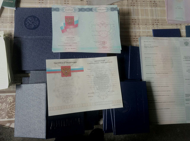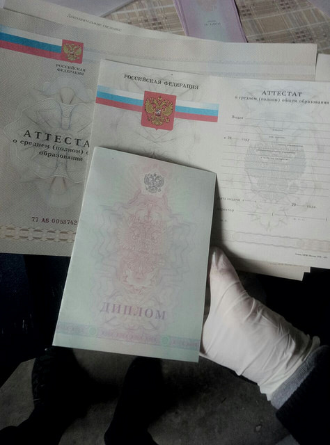 СБУ вилучила велику кількість бланків для виготовлення атестатів і дипломів українського, російського і радянського зразків, свідоцтва про народження та шлюб, підроблених паспортів та інших документів. Також вилучили комп'ютерну техніку і обладнання для підробки документів.