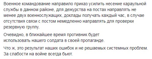 "Очевидно, найближчим часом противник буде використовувати нашого солдата в своїй пропаганді. Що ж, це результат наших помилок і системних проблем, які не вирішувалися. За слабкість на війні завжди б'ють", - зазначив журналіст.