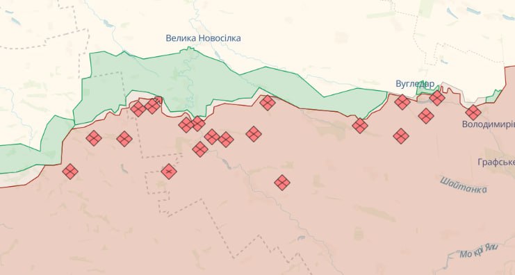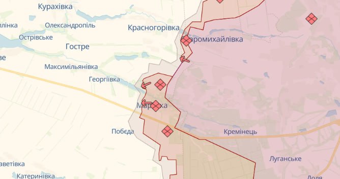 На Мар'їнському напрямку ворог вів безуспішні штурмові дії в районах Мар'їнки, Перемоги та Новомихайлівки Донецької області, де силами оборони відбито 12 атак.