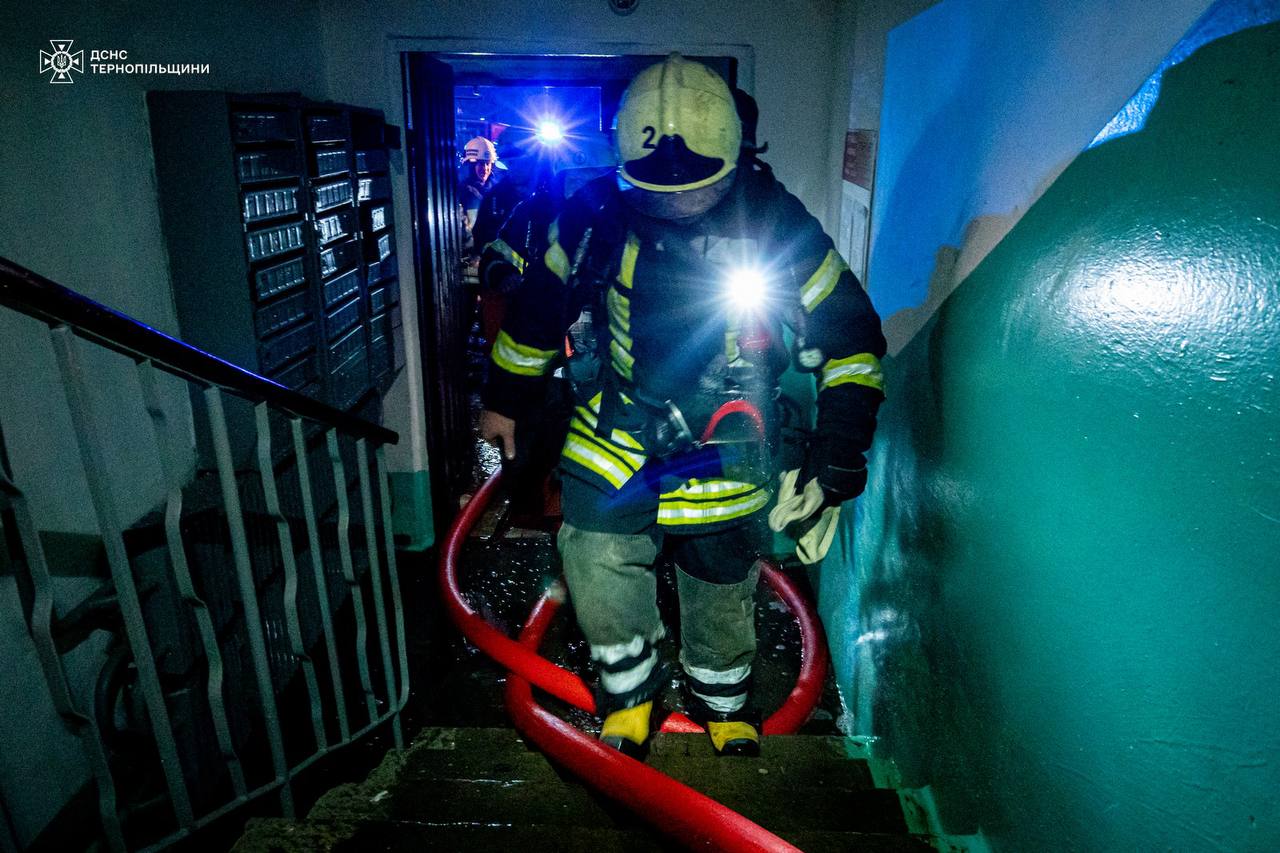 Рятувальники повідомляють, що внаслідок удару ворожого дрона в Тернополі постраждав багатоквартирний будинок, що спричинило масштабну пожежу.