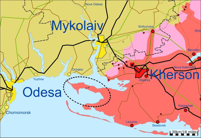 Окрім цього, бойові дії продовжуються у Херсонській області. За даними аналітиків, ЗС РФ встановили контроль над Кінбурнським півостровом, який розташований між Дніпровсько-Бузьким лиманом та Ягорлицькою затокою Чорного моря.