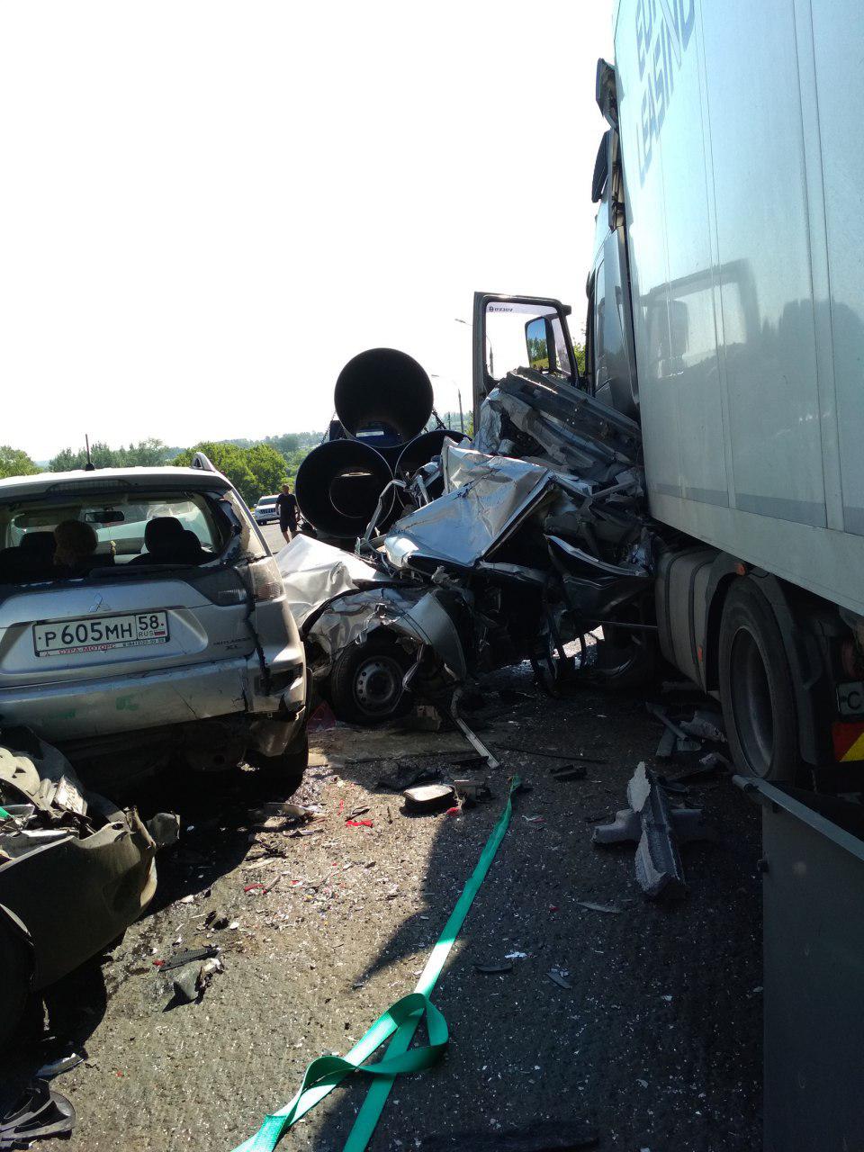 Відразу вісім автомобілів, в тому числі і 2 вантажівки, потрапили в жорстку смертельну ДТП на трасі в 70-киллометрах від Пензи.