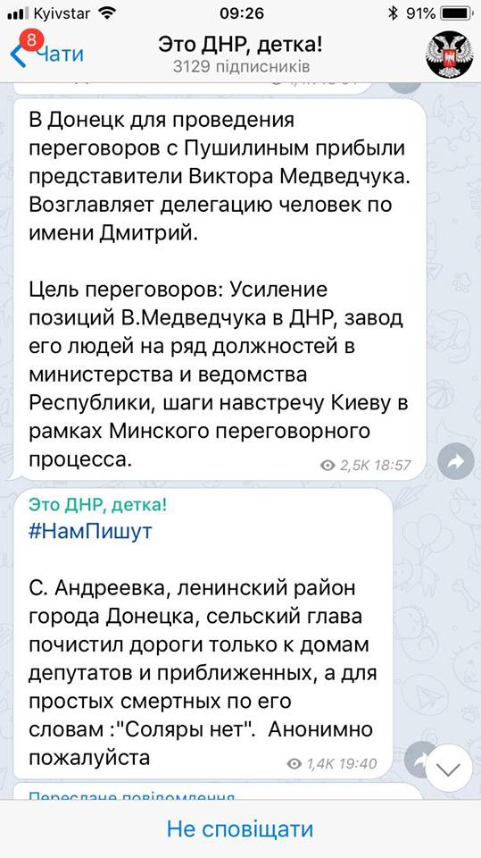 За його словами популярний донецький телеграм-канал "Это ДНР, детка" повідомив, що його звуть Дмитро, і в його завдання входить узгодження людей Медведчука на ряд ключових посад в ОРДЛО.
