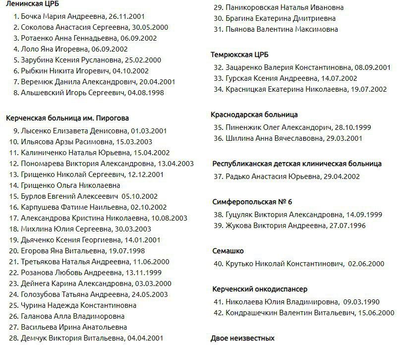 Так звана "влада" Керчі опублікувала повний список постраждалих під час стрілянини в керченському технікумі.