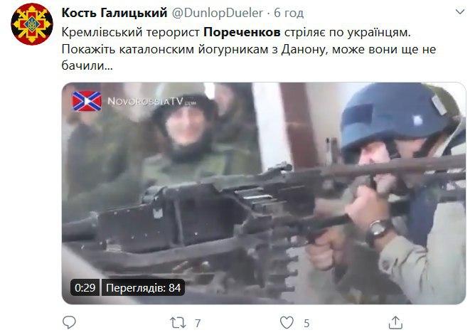 "Кремлівський терорист Пореченков стріляє по українцях. Покажіть йогуртнікам з Данона", - написав користувач Кость Галицький.
