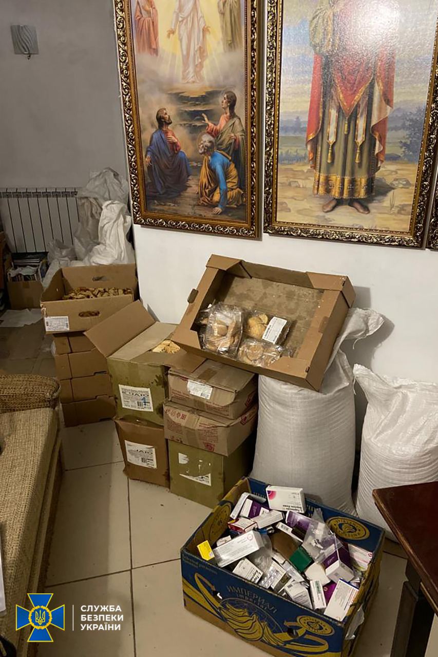 Продовжуються обшуки на об'єктах УПЦ (МП), в ході яких СБУ виявила в єпархіях агітаційні листівки об'єднання підозрюваного у державній зраді Віктора Медведчука, російські "триколори" та колишні склади окупантів.