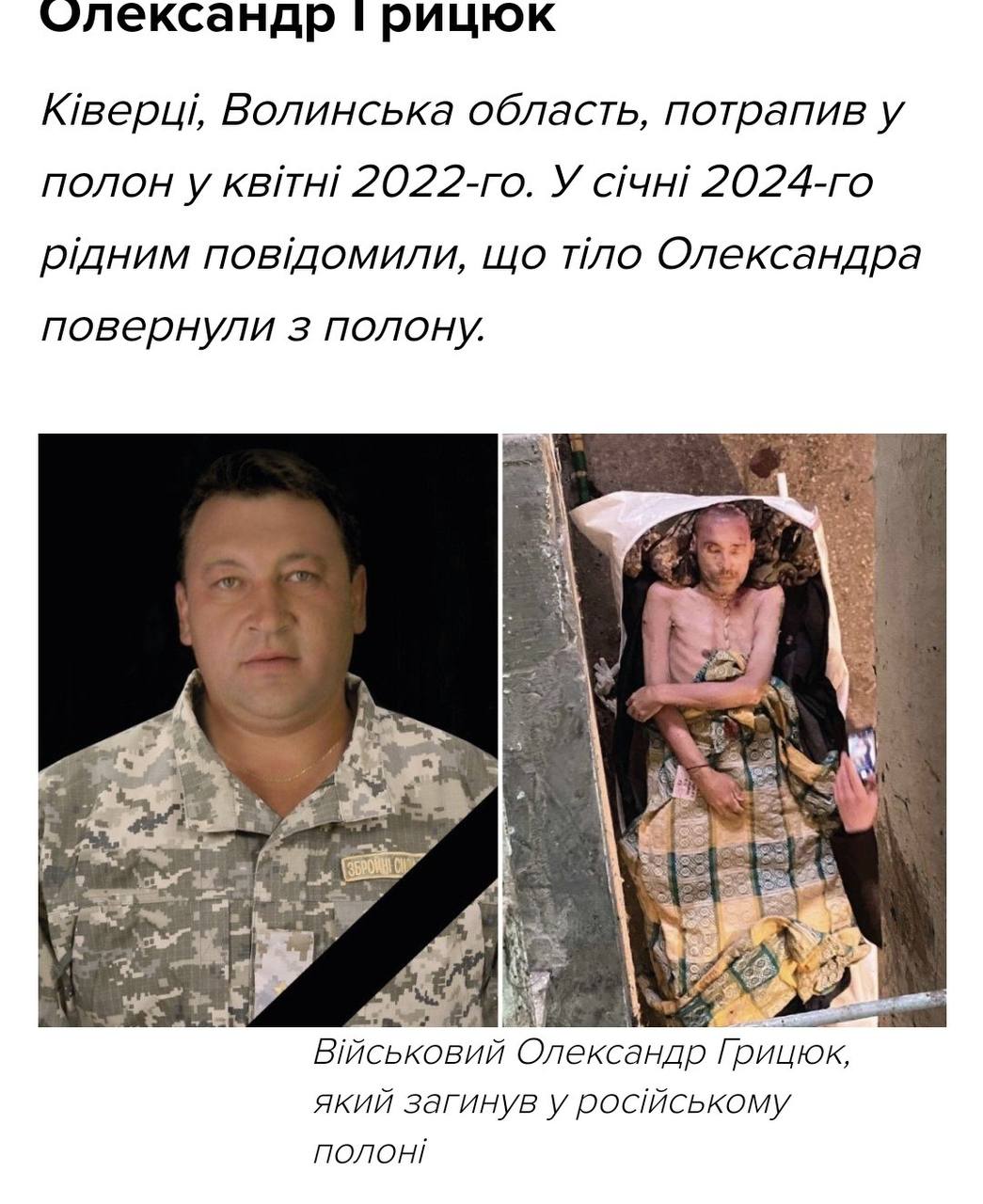 Олександр Грицюк потрапив в полон до окупантів у квітні 2022 року. Родичам повідомили про повернення тіла в Січні 2024 року.