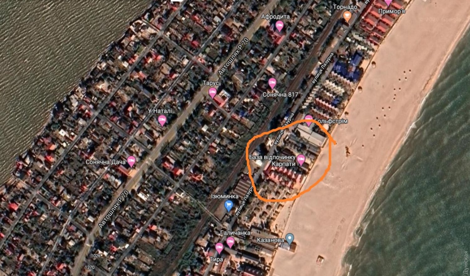 "На Сонячному районі в Затоці бомблять магазин бази відпочинку "Карпати", наїхало повно тітушек, КамАЗ прорвався на територію бази, бомблять і вантажать на вантажівку, нічого не бояться, їм все по барабану. Поліція не реагує", - розповів очевидець подій.