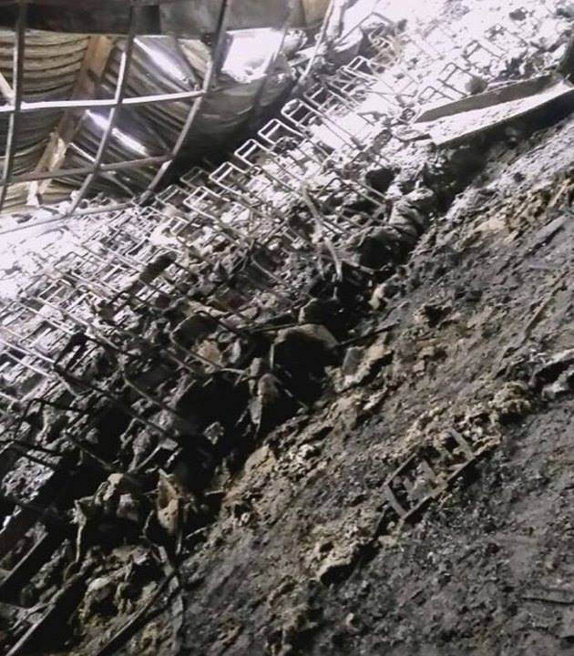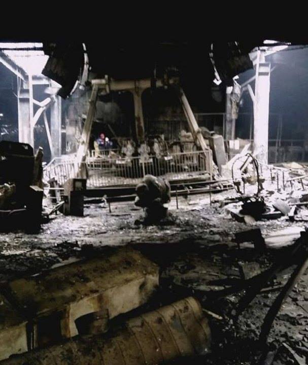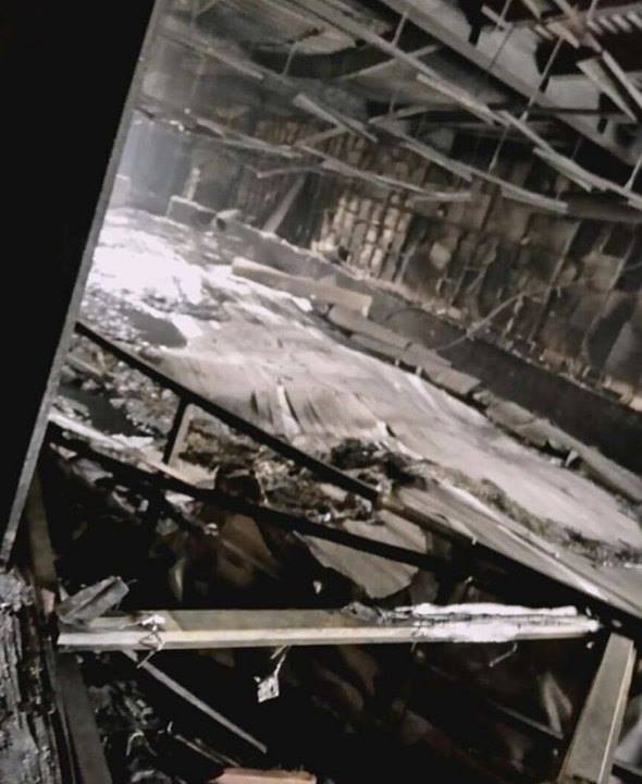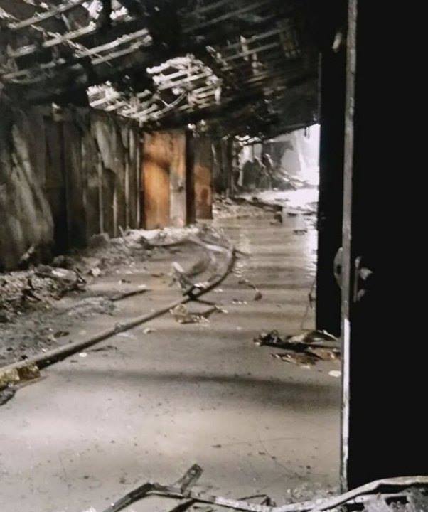 На фото видно, що будівля дуже сильно постраждала в результаті пожежі. Вигоріло практично все, що тільки було можливо. Стіни, стеля та підлога вкрилися великим шаром гару.