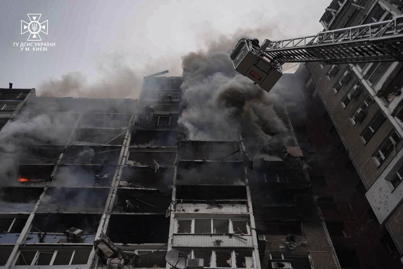 Палають багатоповерхівки і станція СТО: нові дані про наслідки ворожої атаки на Київ, фото