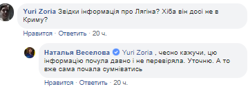 Проте, інформація про втечу Лягіна поки що не підтверджена. Про це написала сама нардеп.