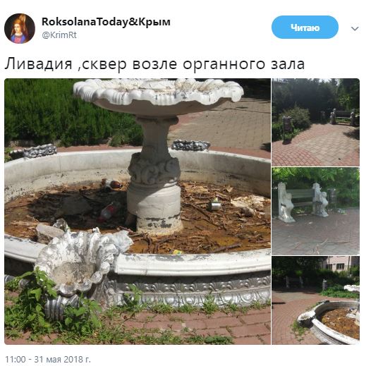 Так в Twitter блогера RoksolanaToday & Крим опубліковано фото скверу біля Лівадійського органного залу.