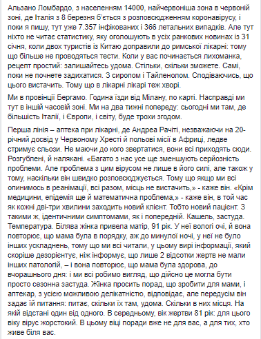У мережі опублікували жахливу історію від жителя італійського міста Альзан Ломбардо, який виявився охоплений епідемією коронавірусу.