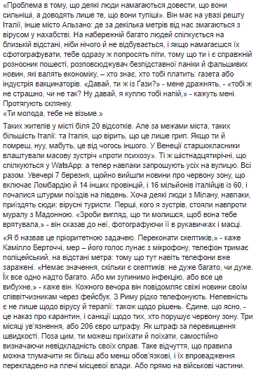 Перекладом розповіді громадянки Італії поділилася в Facebook Анна Коваленко.
