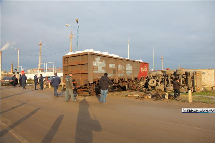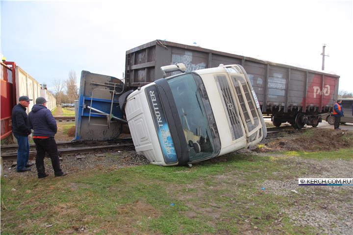 У ніч на 28 грудня в Керчі вантажівка, що перевозить камінь для будівництва Керченського мосту потрапила під потяг.