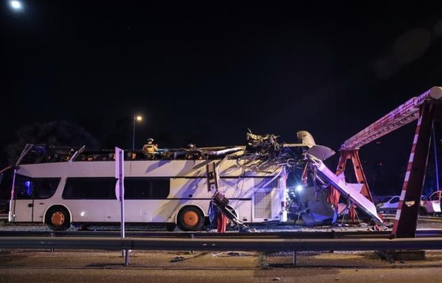 Другий поверх автобуса був повністю знесений. В автобусі подорожувало майже 50 пасажирів.