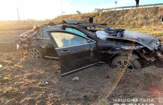 У поліції повідомили, що 45-річний водій із Закарпатської області не вибрав безпечну швидкість руху, не впорався з керуванням та на заокругленій ділянці дороги в'їхав у відбійник і перекинувся на автомобілі Mercedes CLS в кювет.