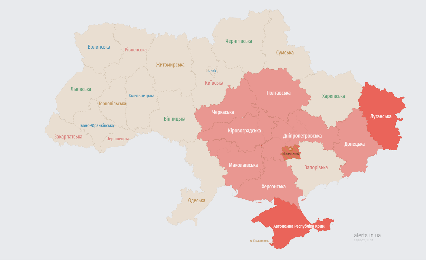 В другій половині дня понеділка, 7 серпня, в низці областей України оголосили повітряну тривогу.