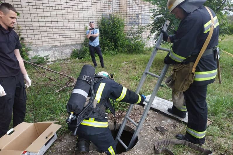 Щоб дістати тіло дитини з колодязя колектору, знадобилася допомога рятувальників. Вони за допомогою драбини спустилися в колодязь і витягли його.