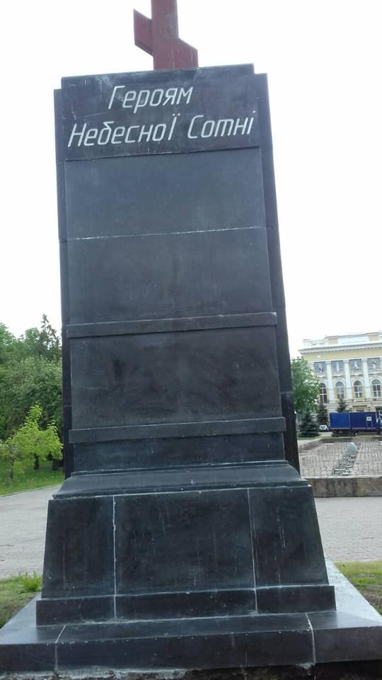 У Харкові в четвер, 7 травня, на площі Героїв Небесної Сотні невідомі облили білою фарбою постамент з написом "Героям Небесної сотні".