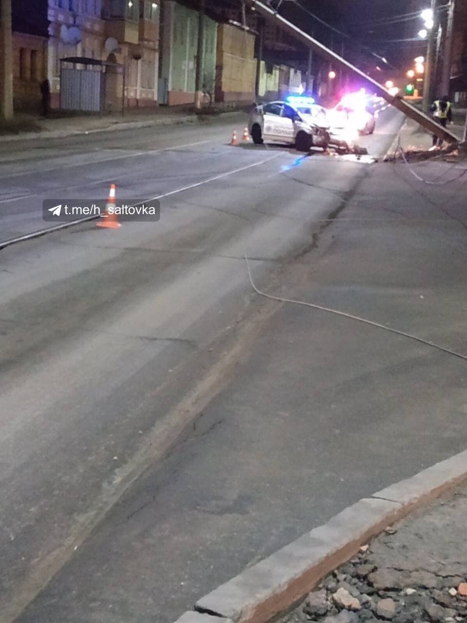 У Харкові на вулиці Гольдбергівській, в ніч на вівторок, 12 січня, патрульні поліцейські на службовій Toyota Prius врізалися в стовп і обірвали трамвайні дроти.