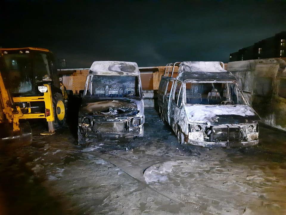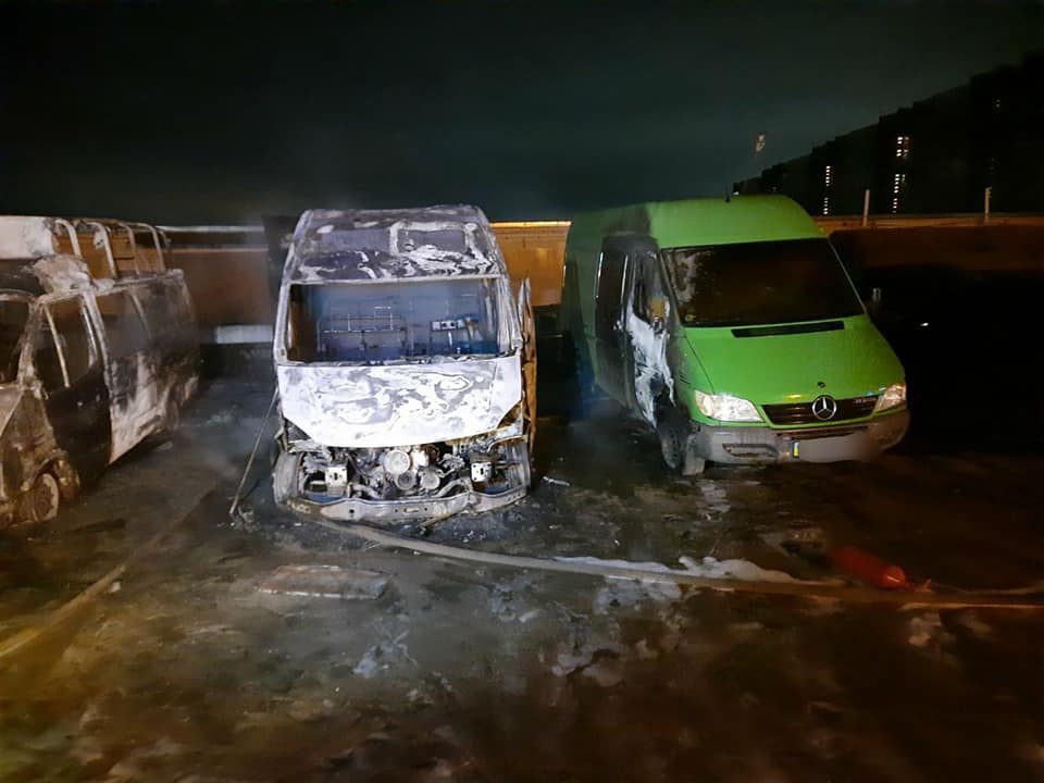 У повідомленні, яке було опубліковано представниками ДСНС, сказано, що пожежа сталася в ніч з 23 на 24 квітня о 01:40 на вулиці Сонячній. Пожежники прибули на місце події, і побачили, як горять мікроавтобуси Mercedes Sprinter і Ford. Загальна площа пожежі - 50 квадратних метрів.