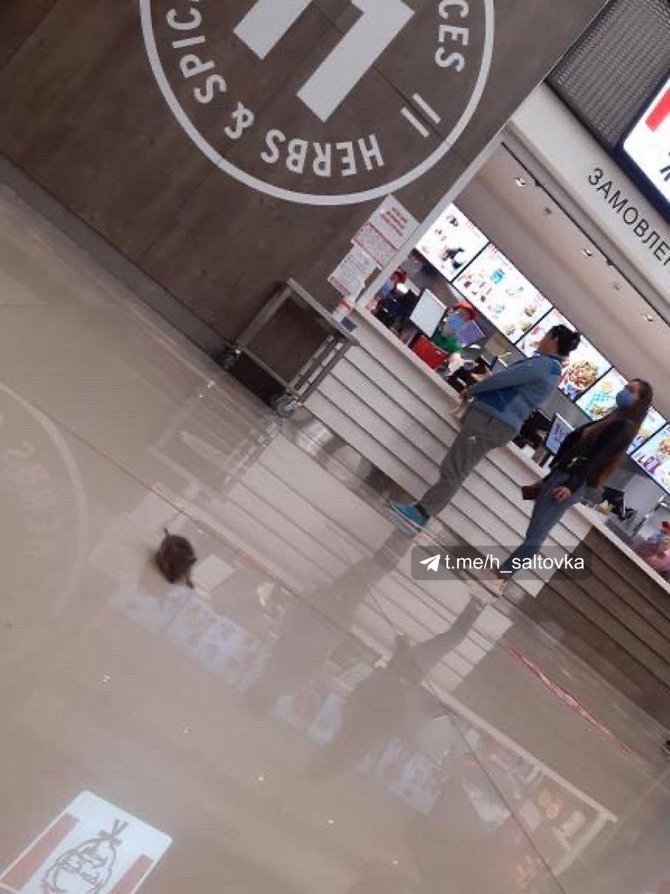 В харківському ТРЦ відвідувачі фуд-корту помітили несподіваного "гостя" - просто посеред холу біг величезний пацюк.