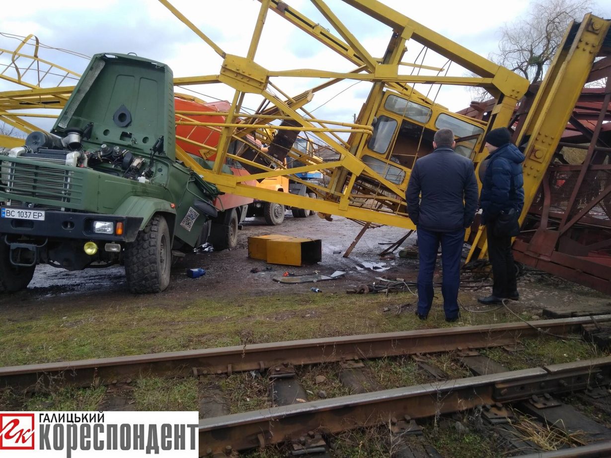 Деталі з'ясовуються – поки версією трагедії є сильний порив вітру, через який кран протягло 50 метрів і кинуло на вантажівку. Подробиці встановлюються.