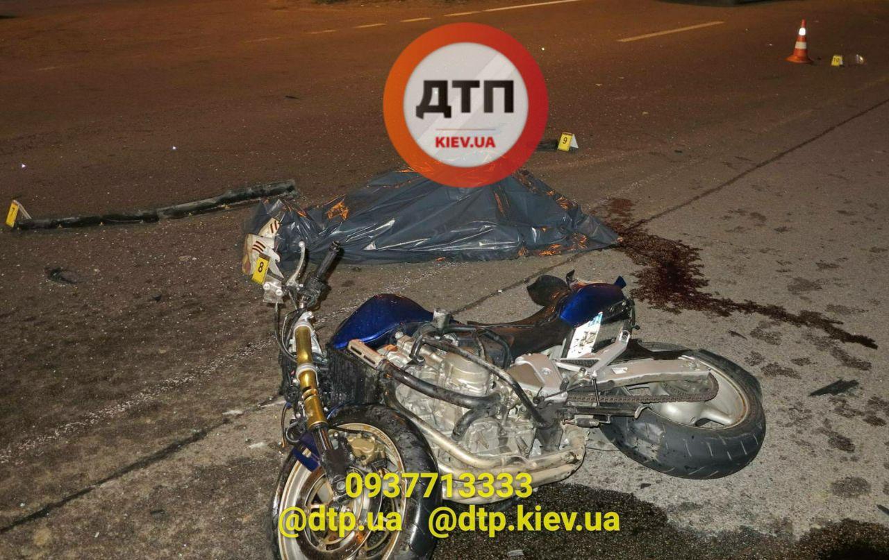 В Києві сталася смертельна аварія - мотоцикліст з дівчиною на великій швидкості влетів в автомобіль, яким керувала жінка, а в машині знаходилася дитина. Хлопець загинув на місці, пасажирку мотоцикла госпіталізували до лікарні у важкому стані.