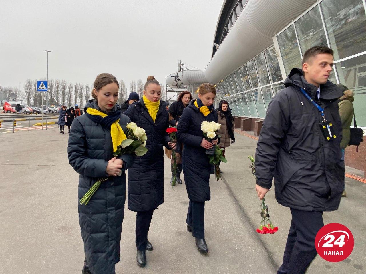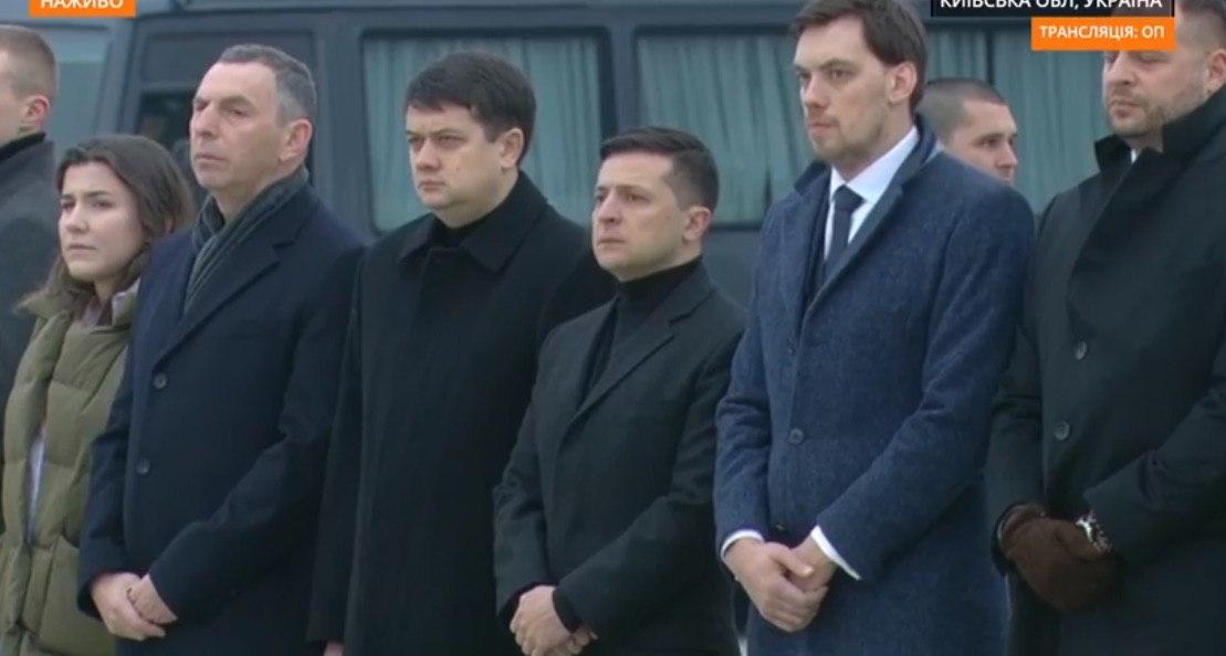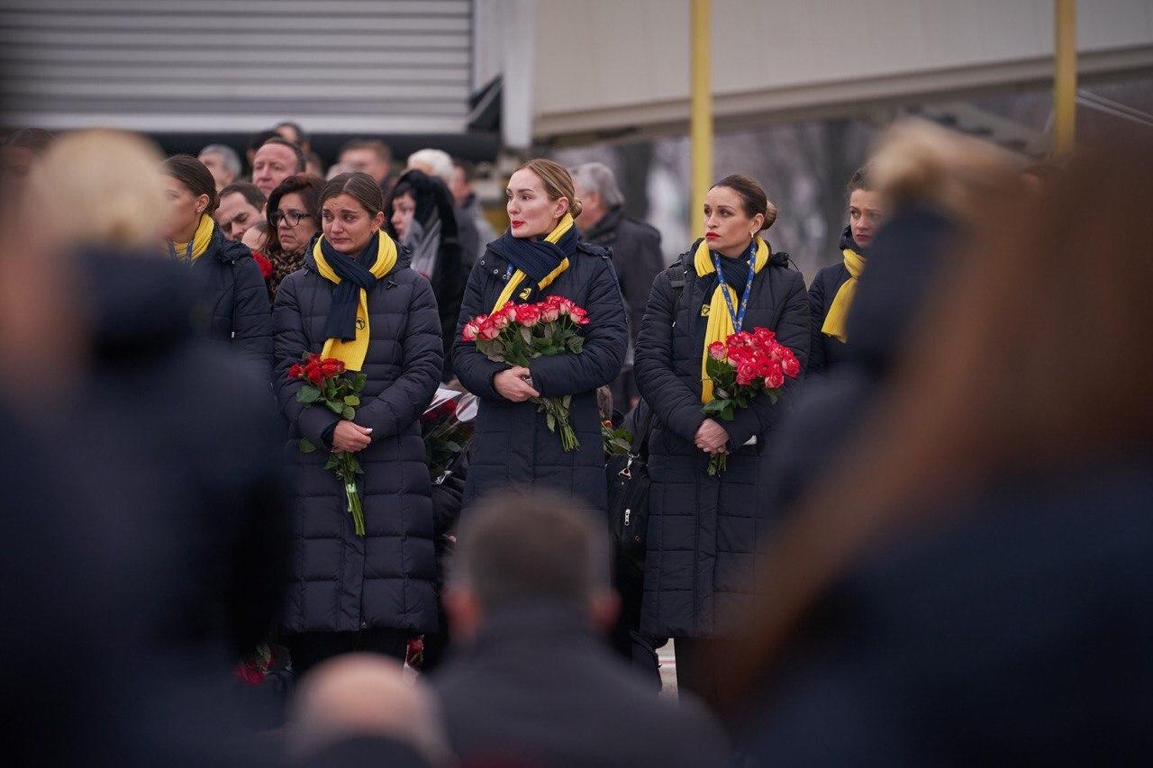 Борт з тілами загиблих українців зустрічали президент України Володимир Зеленський, а також глава Верховної Ради Дмитро Разумков, прем'єр-міністр Олексій Гончарук, помічники президента Сергій Шефір та Андрій Ярмак, генпрокурор Руслан Рябошапка, голова Служби безпеки Іван Баканов та інші.