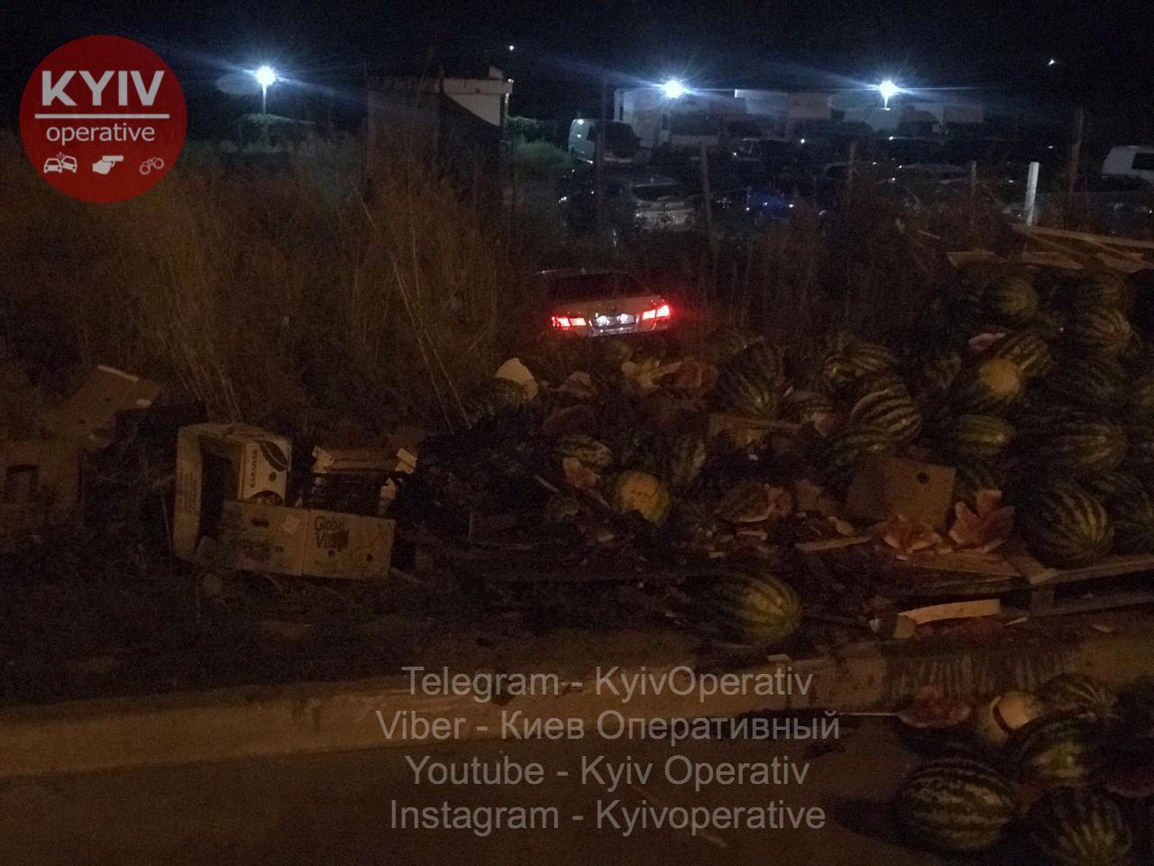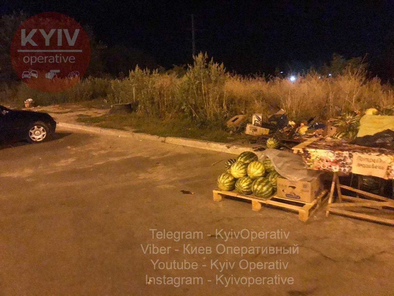 У ніч на неділю, 30 серпня, в Києві п'яний водій BMW зніс торгову точку з кавунами на вулиці Софії Русової.