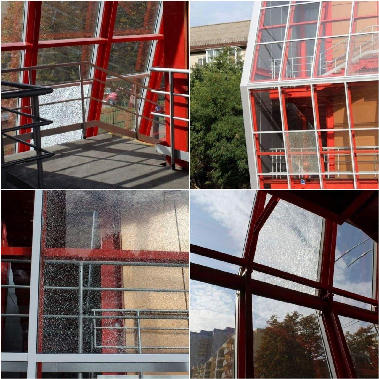 У Києві на пішохідному мосту, який знаходиться на Відрадному, невідомі влаштували погром, розбивши скло.