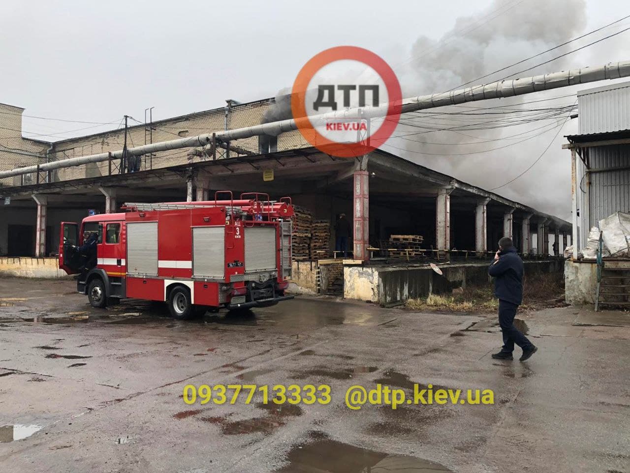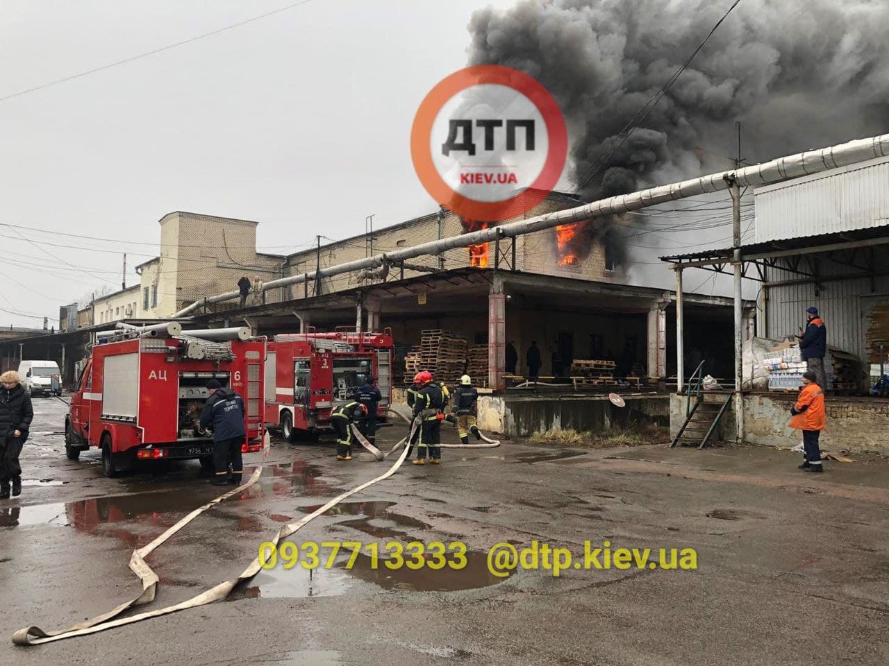Як видно на фото, займання сталося в адміністративній частині приміщення - там з вікон виривається вогонь і валить чорний дим.