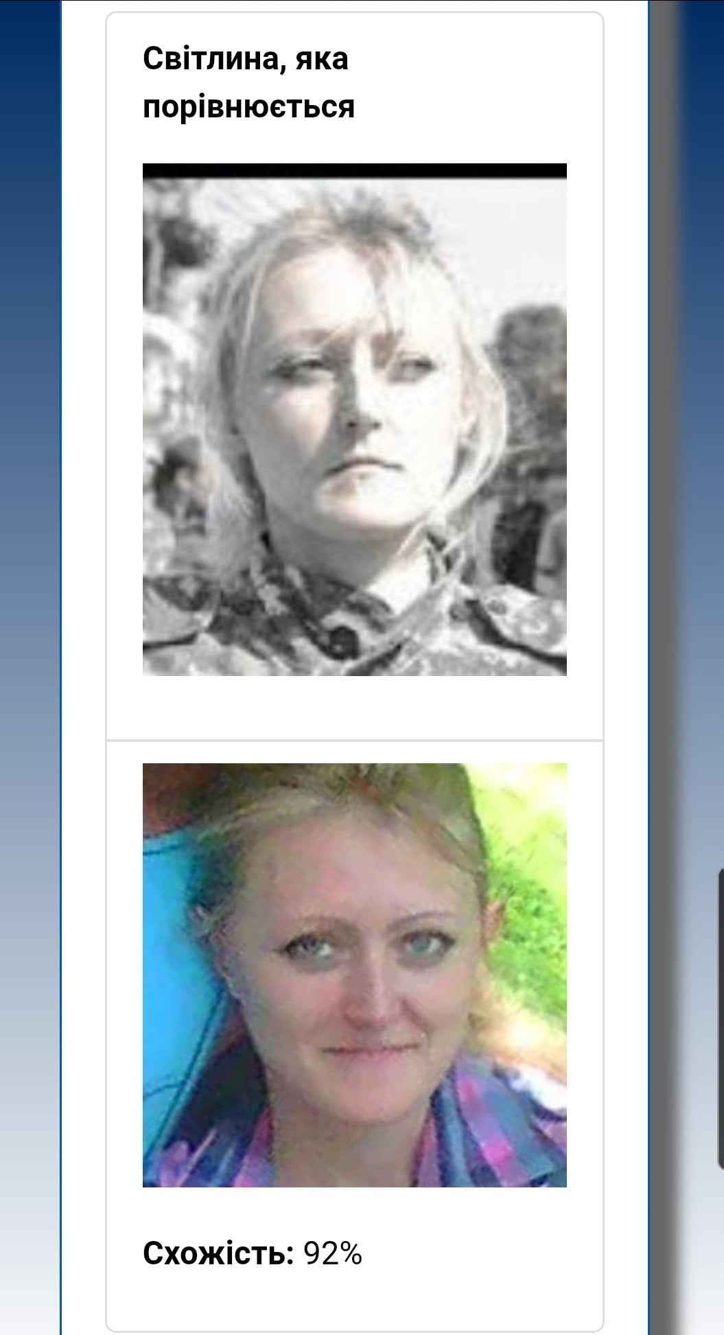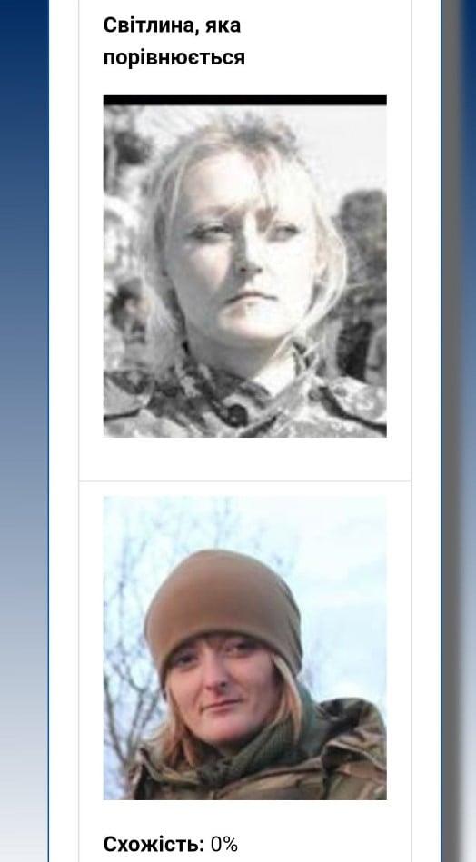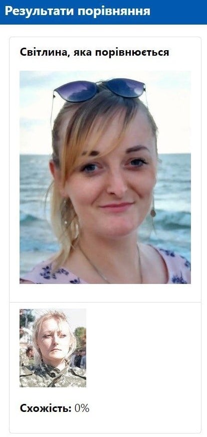 Фото конвоїрки бойовиків і фото Вікторії Котеленець у різні роки порівняли за допомогою системи "NeuroIdentygraf", що довело, що це різні особи.