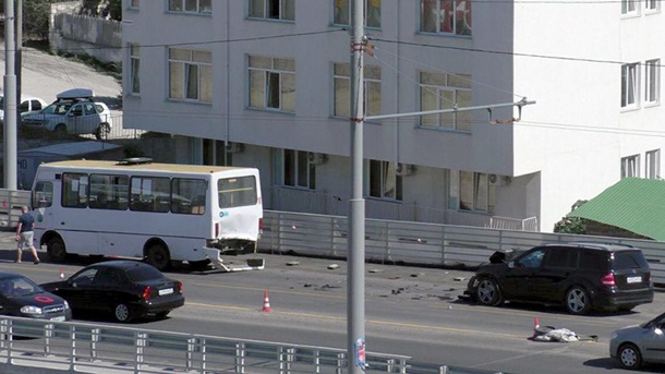 ДТП сталася в місті Севастополь. Там авто марки Mercedes врізалося в автобус, що стояв попереду.