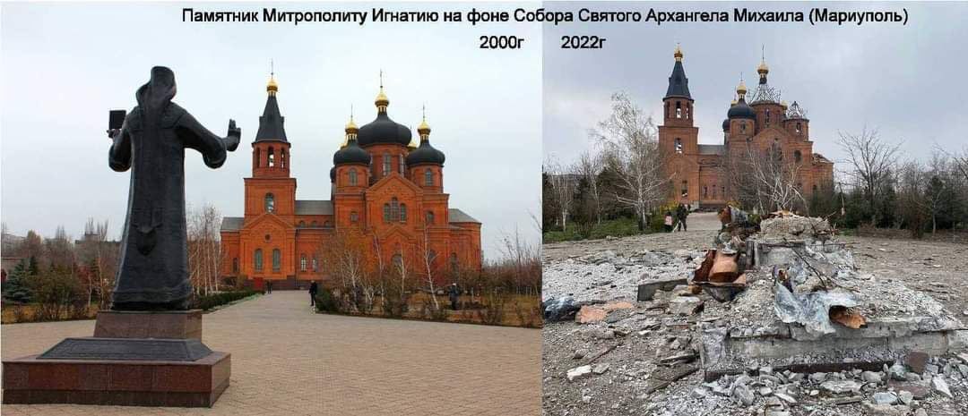 Російські окупанти цілеспрямовано знищили пам'ятник митрополиту Ігнатію - одному із засновників Маріуполя. Також вони серйозно пошкодили церкву, при якій стояв цей пам'ятник.