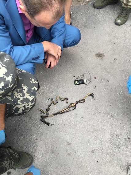 Також він опублікував фото та відео з місця події. Як можна помітити, в паливному відсіку авто лежить мобільний телефон, обмотаний дротами. На місці працюють правоохоронці.