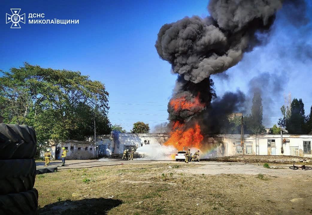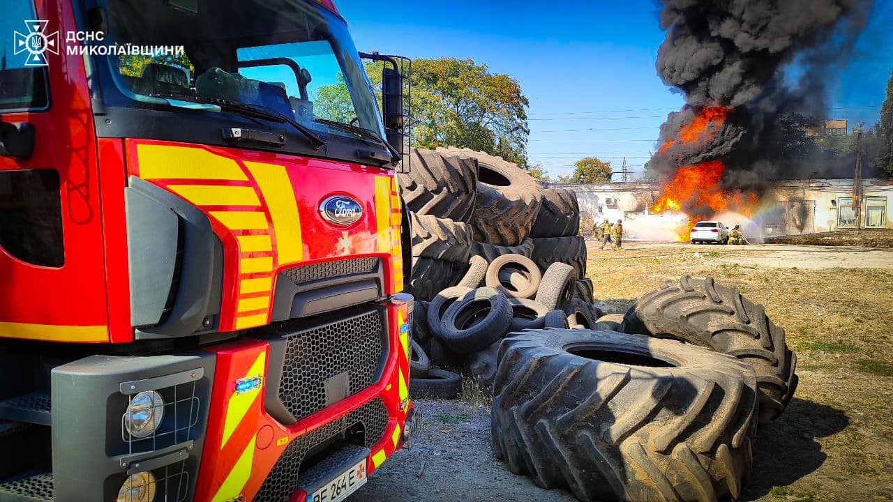 "У Миколаєві вогнеборці ліквідовують пожежу бензовоза з пальним, яка перекинулась на господарчі будівлі автотранспортного підприємства", - йдеться у повідомленні.