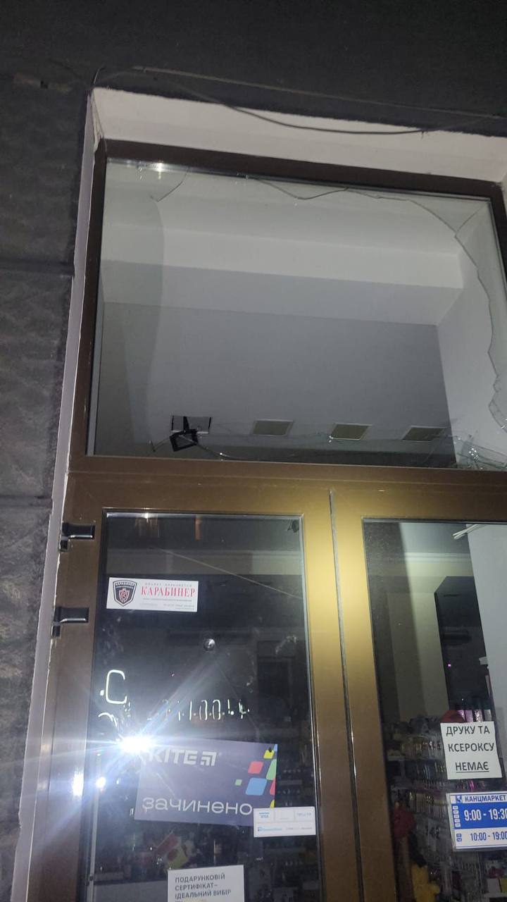 "Вибуховою хвилею вибито вікна комерційних приміщень та автосалону. На щастя, обійшлося без постраждалих", – наголошує він.