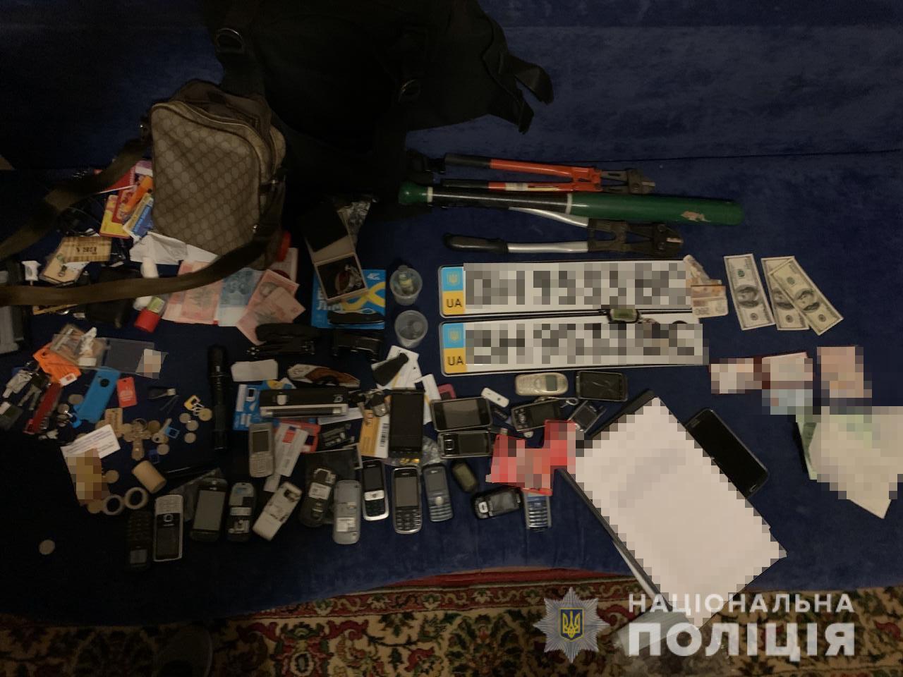 За місцем проживання затриманих було вилучено зброю та інші спецзасоби, які використовували при вчиненні кримінальних правопорушень, десятки мобільних телефонів і гроші.