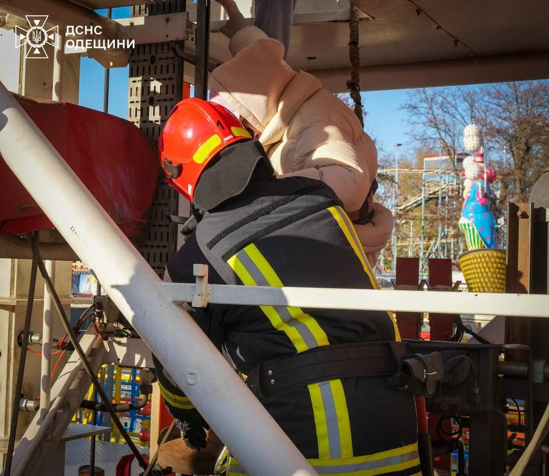 Пізніше прес-служба ГУ ДСНС України в Одеській області повідомила, що рятувальники надали допомогу дітям, які застрягли на атракціоні.